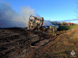 МЧС Запорожской области сегодня официально подтвердило: бензовоз, следовавший в сторону Херсонской области, действительно перевернулся и улетел в кювет, после чего цистерна мгновенно загорелась. Водителю удалось выбраться, пострадавших нет.