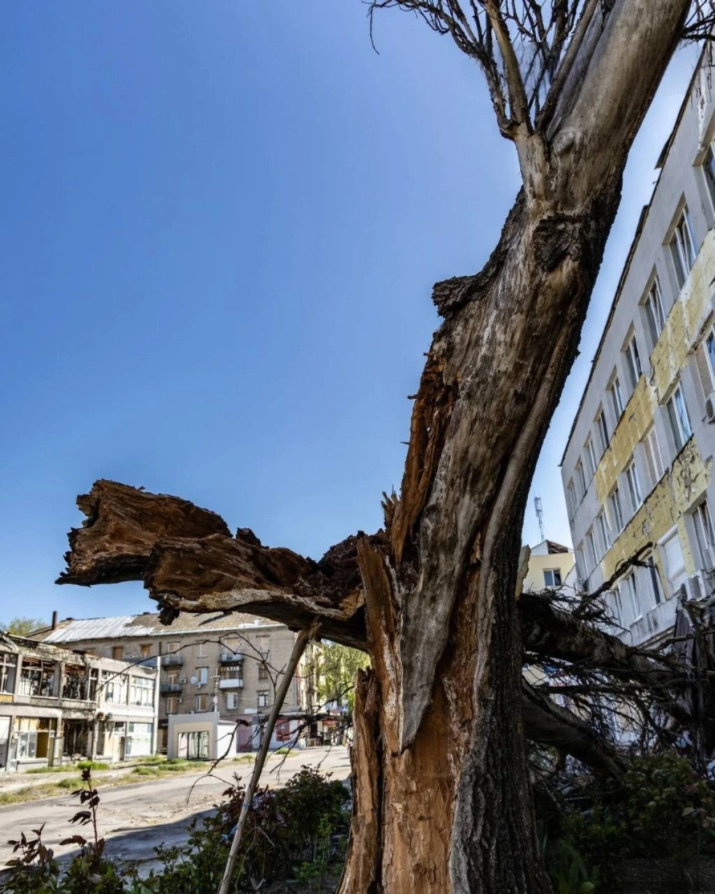В Херсоне показали упавшие от урагана деревья и антидроновые сети