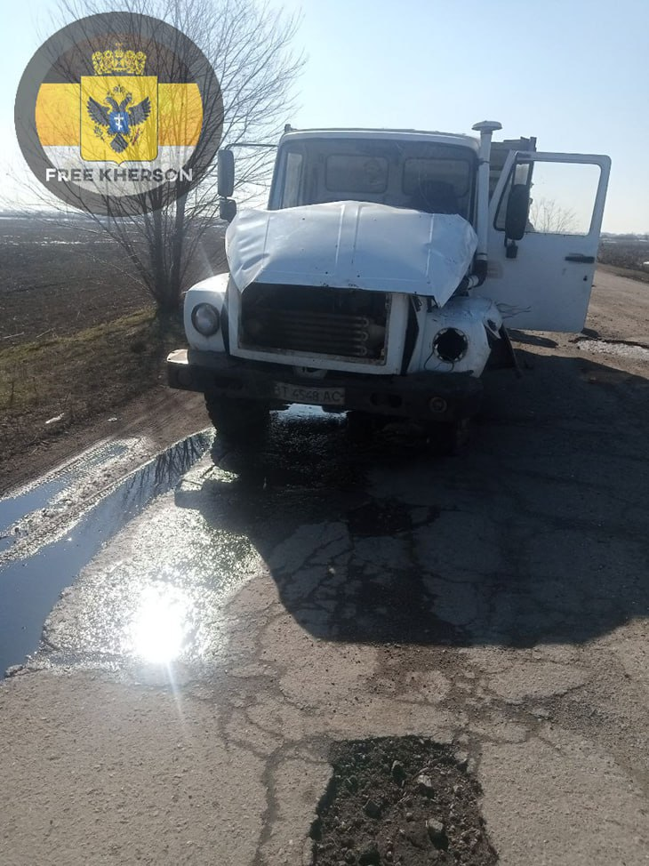 Фото: ТГ-канал «FREE KHERSON» автомобиль в Херсонской области после наезда на мину.
