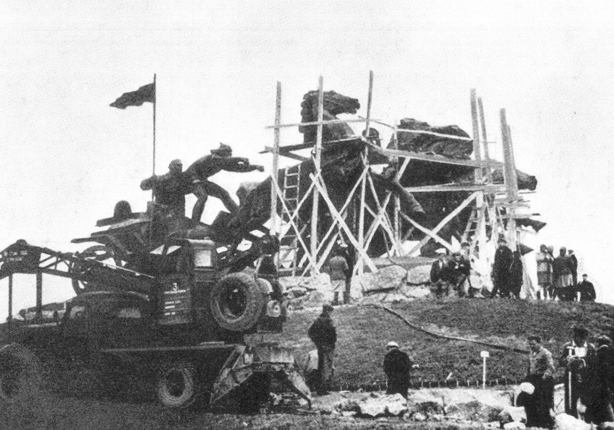 Создание «Тачанки» велось в Ленинграде на заводе «Монумент-скульптура». Скульпторы Лев Родионов, Юрий Лоховинин, Леонид Михайленок вместе с Полторацким консультировались у самого Буденного, который лично обеспечил 25 тонн бронзы. Летом 1967 года памятник доставили грузовиками в Каховку и установили на искусственном холме, вдали от дорог. Торжественное открытие собрало десятки тысяч людей, участников боев, делегации и военных, хотя сам маршал из-за преклонного возраста не смог присутствовать.